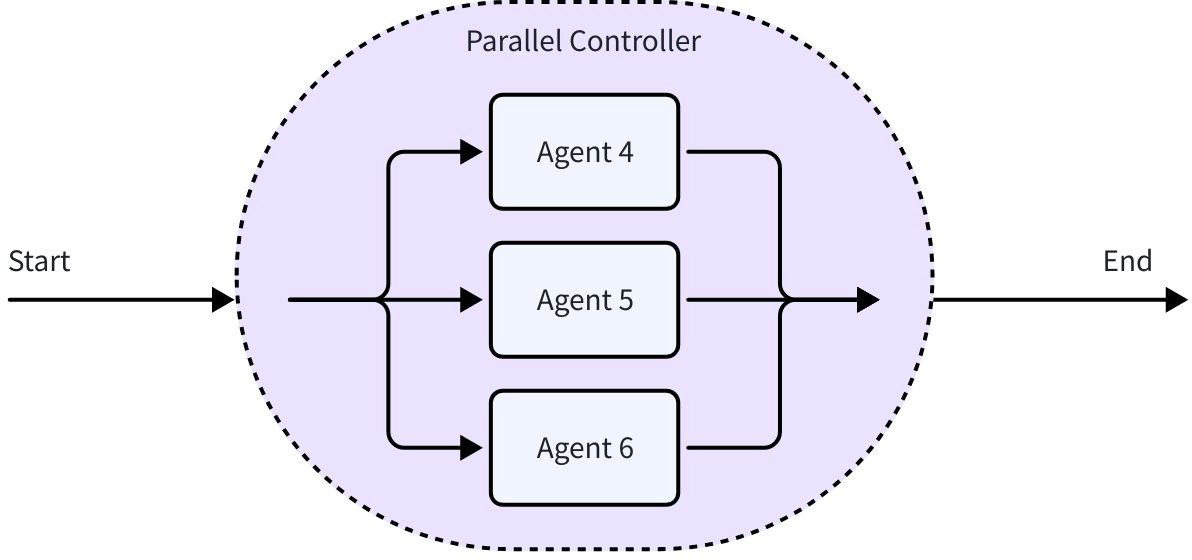 ParallelCompose SubAgents to run concurrently under the same context. Name/Description identify the Parallel Agent. Executes subagents in parallel, ends after all complete.TransferUpstream full dialoguePreset