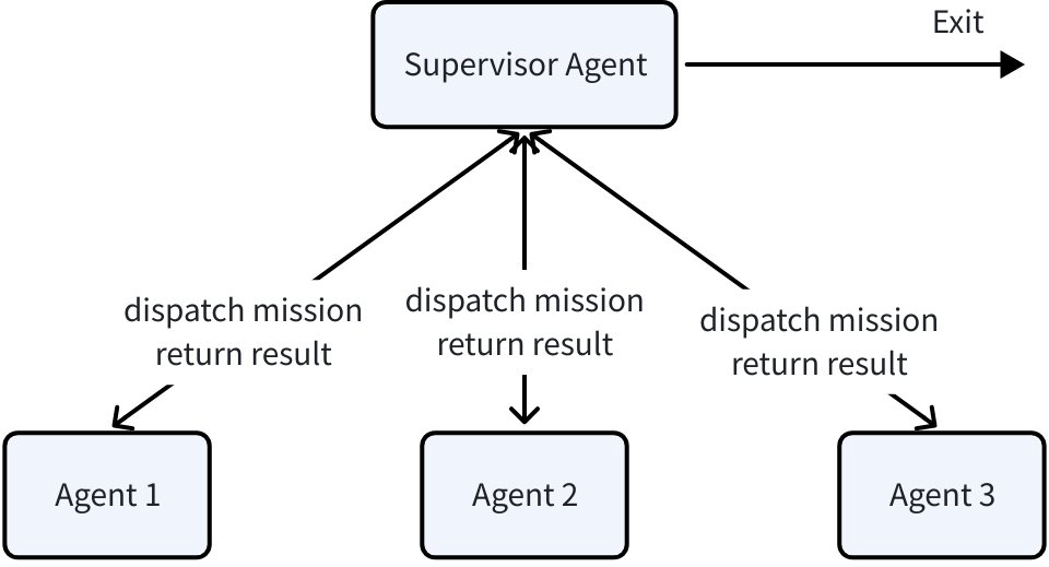 supervisorAgent, err := supervisor.New(ctx, &supervisor.Config{ Supervisor: s, SubAgents: []adk.Agent{researchAgent, codeAgent, reviewAgent} })